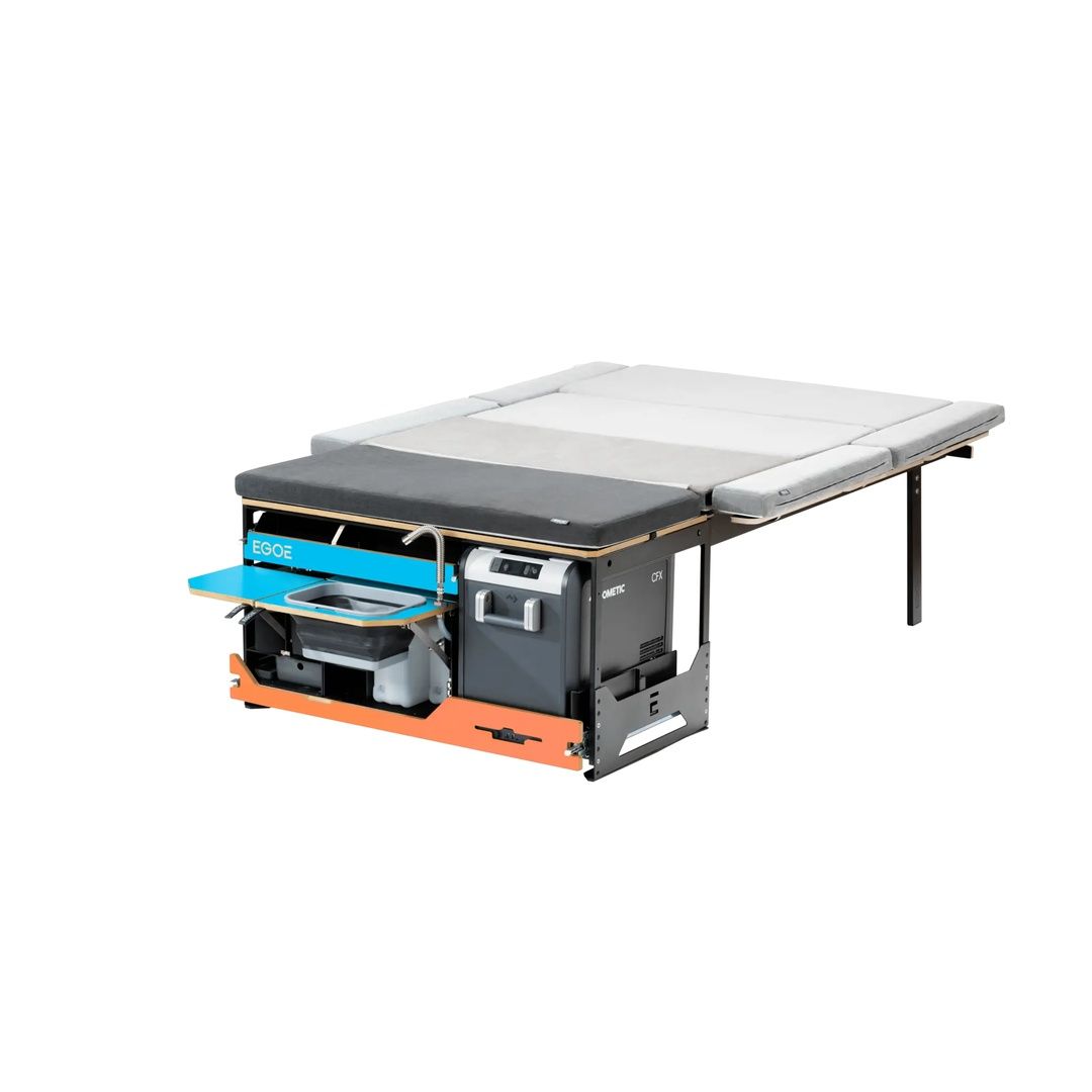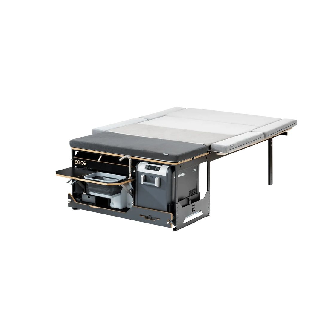 Univerzální kempingová vestavba pro vozy kategorie MPV. Kompletní řešení pro spaní, vaření i hygienu na cestách.