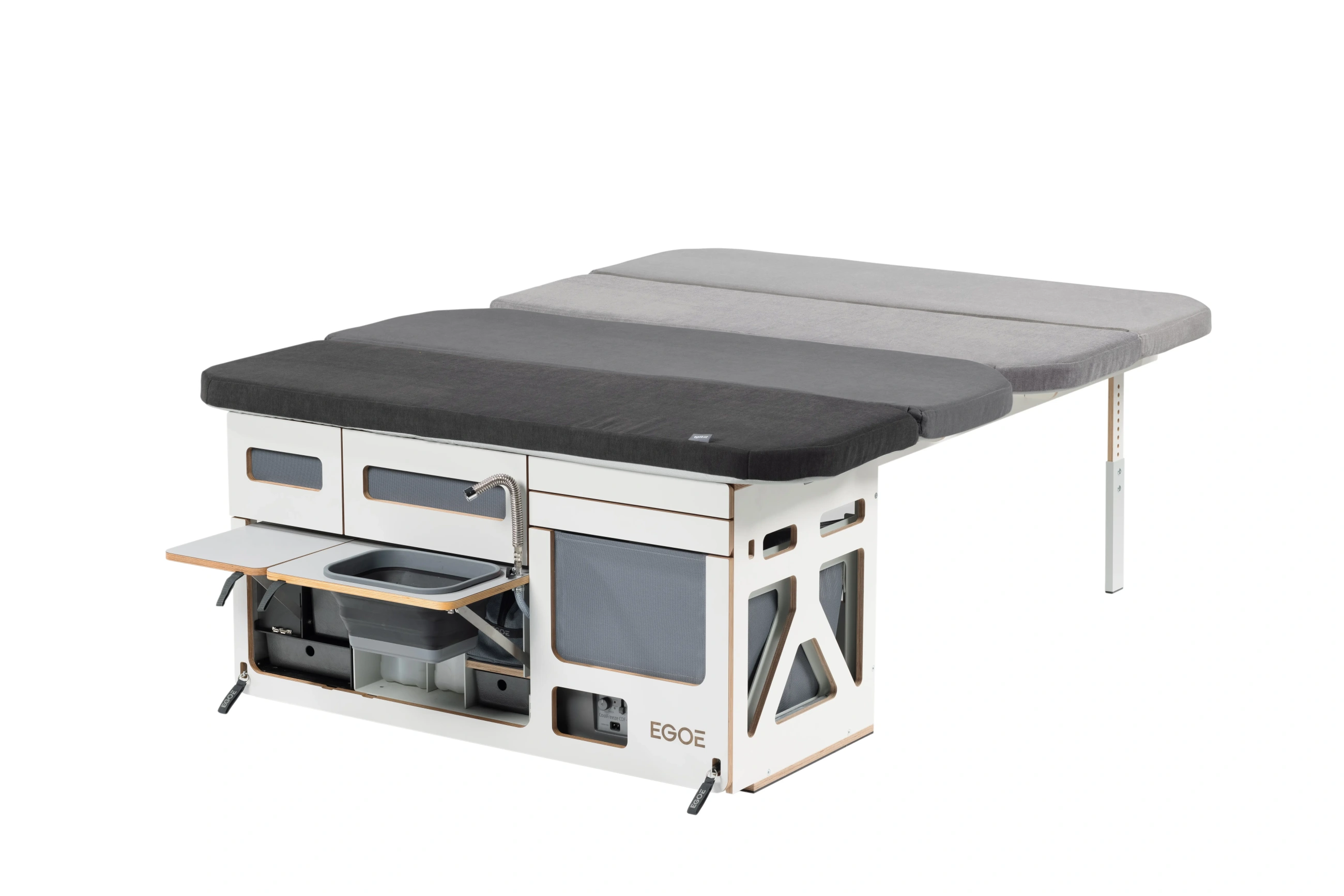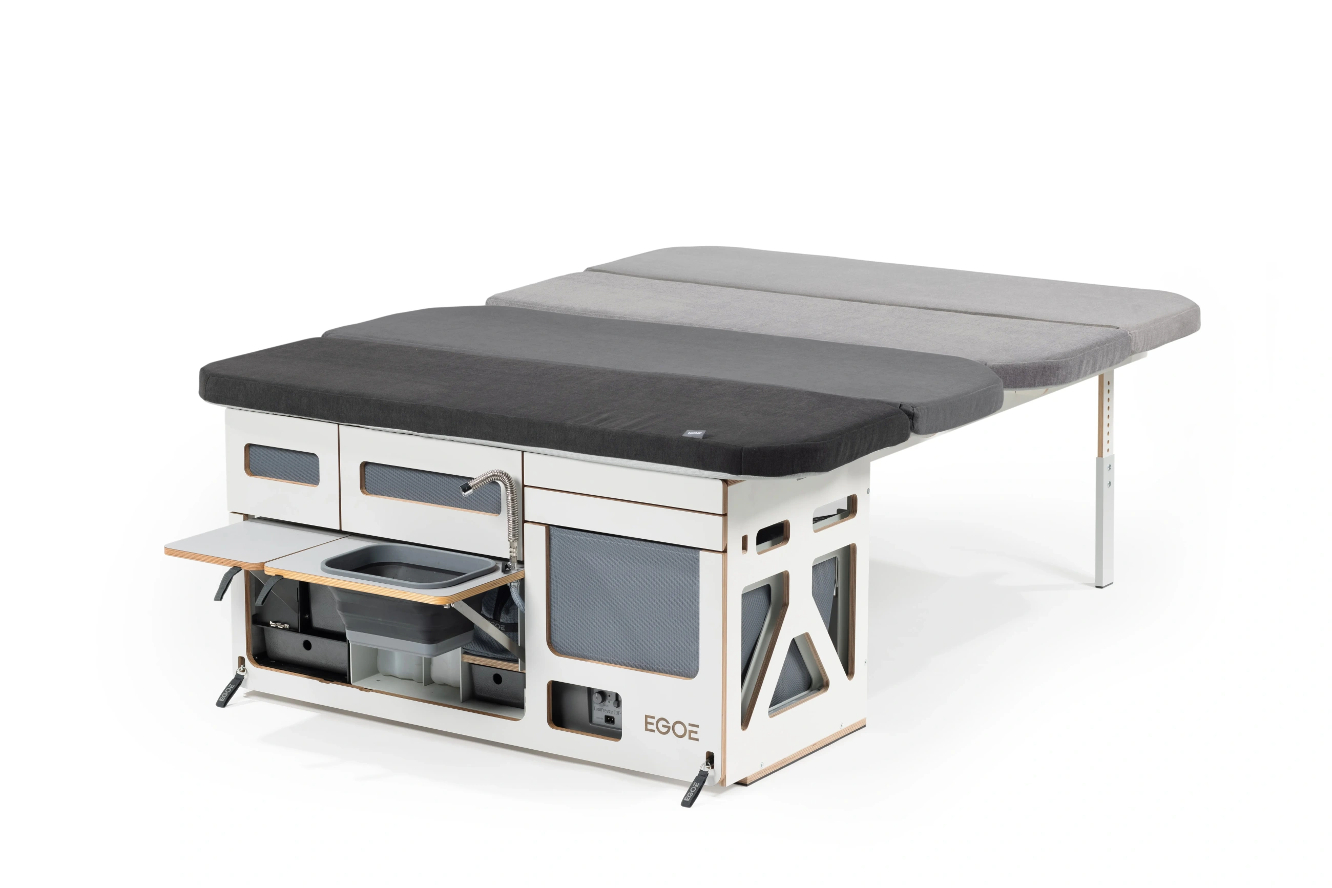 EGOE nest Roamer 2.0/550 je navržen tak, aby poskytoval maximální funkčnost a komfort v kompaktním balení. Každý prvek byl pečlivě promyšlen, od snadného přístupu k úložným prostorům až po kvalitní materiály, které vydrží náročné podmínky.